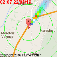 No, there is more to it than that. I didn’t know whether Kingsway would be affected even when the wind is from the South-West. Maybe the pollution would be dumped on Haresfield or rain down on Cheltenham or Scandinavia. So Plume Plotter calculates how high the plume rises and how it disperses with distance. The display shows how much pollution reaches ground level at each point on the map.